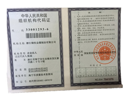 浙江錦恒金屬制品有限公司組織機(jī)構(gòu)代碼證
